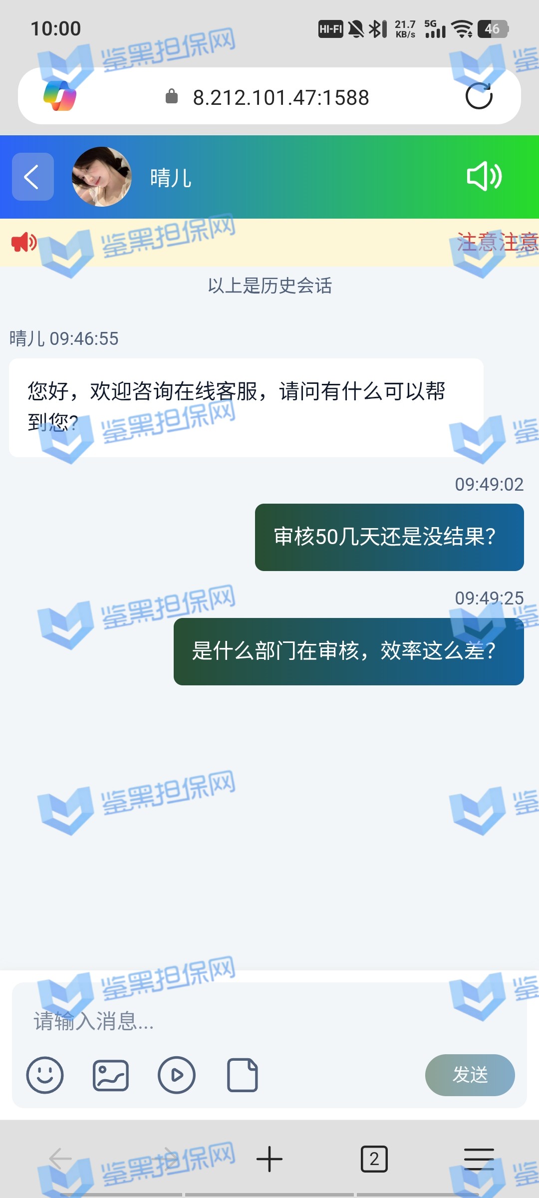 鉴黑担保网维权专员已受理