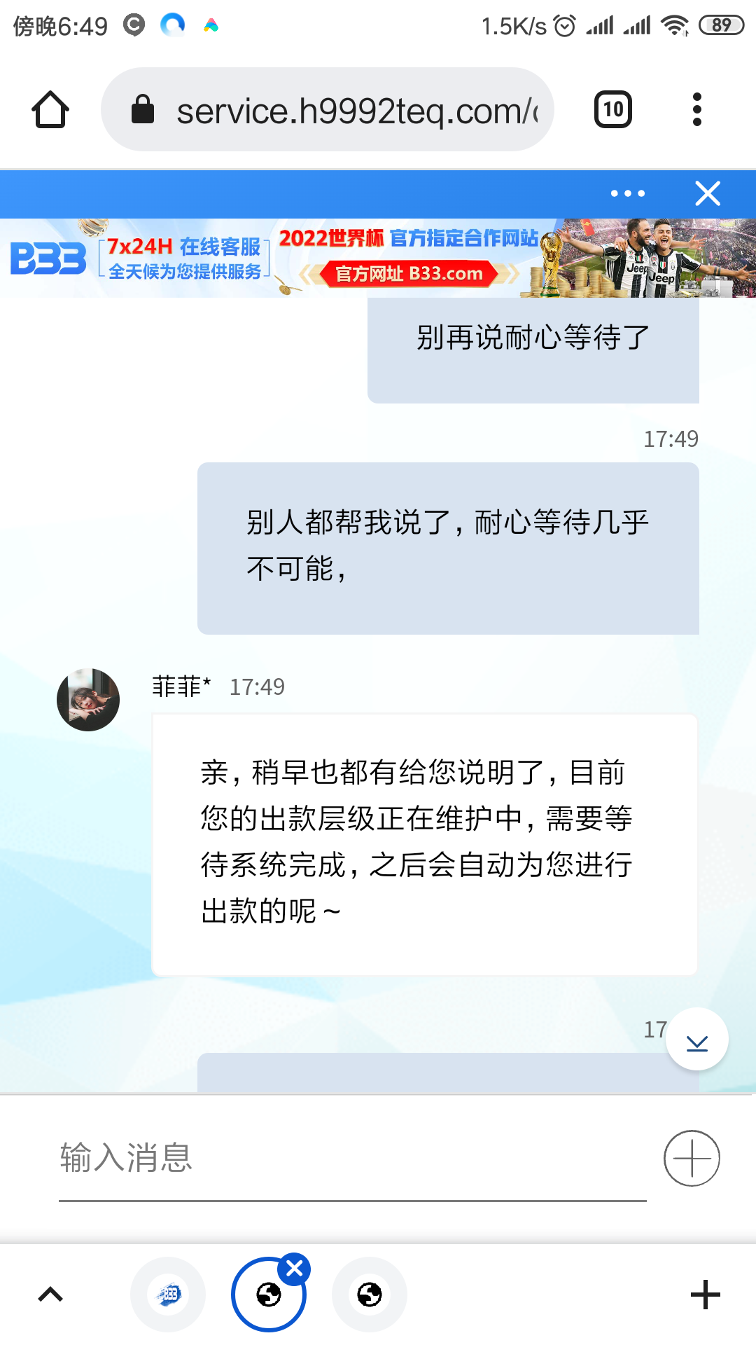 他们的做法基本上都是大额度的优惠,让你去存款,存款以后就算 是赢了,还是会审核,时间久,你长期联系客服,客服也不会理你了,八九不离十,肯定是要黑的啦。